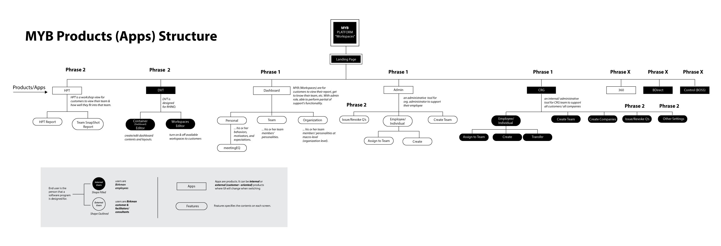 A site map helps visualize the structure and relationship of each workspace. It also helps me understand the priority for each function in each release.